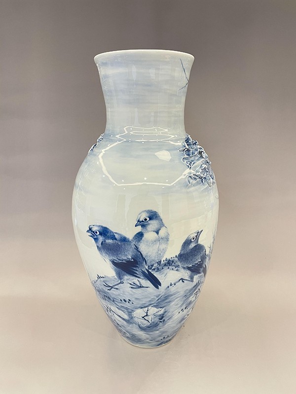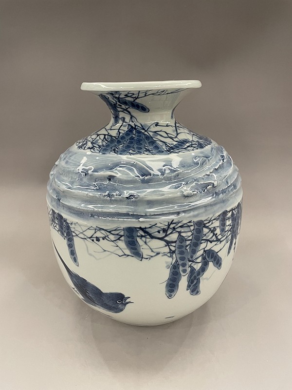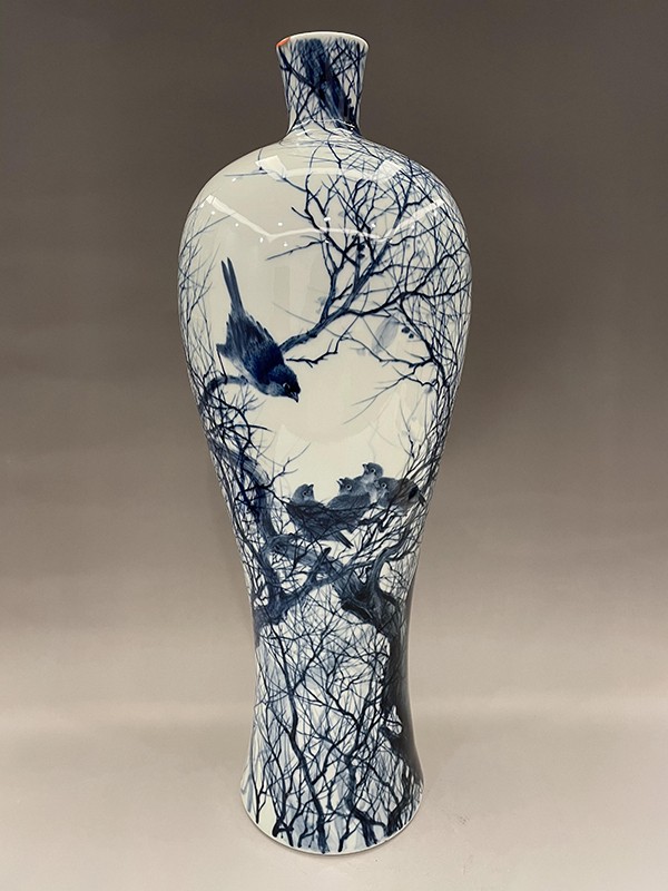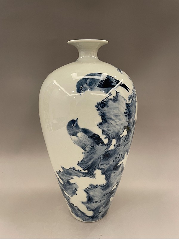 2021年,創(chuàng)作的柴窯青花瓶《松鷹圖》在第十七屆中(深圳)國際文化產(chǎn)業(yè)博覽交易會“中國工藝美術(shù)文化創(chuàng)意大賽”評選中榮獲“銀”獎。